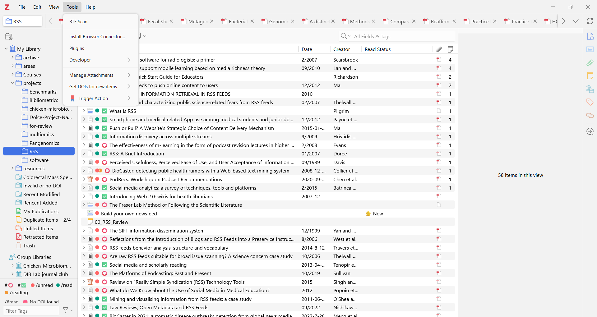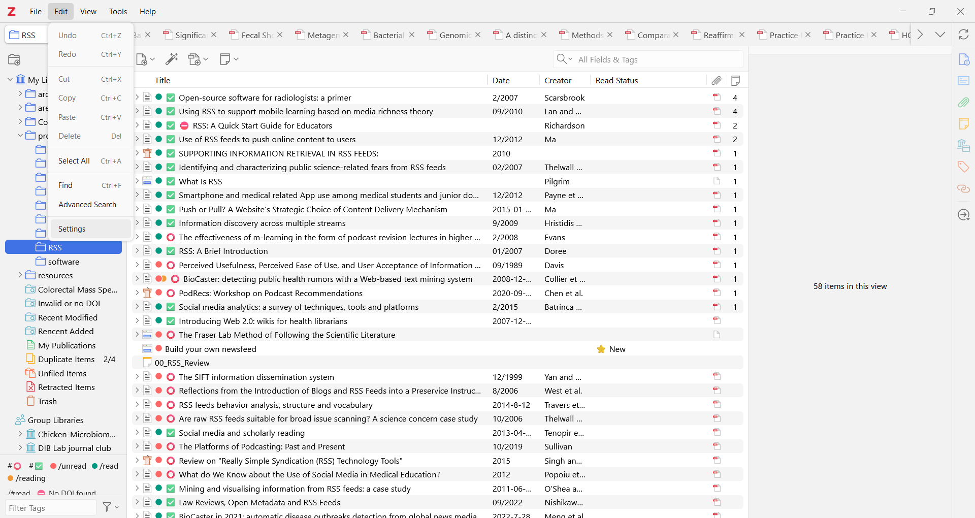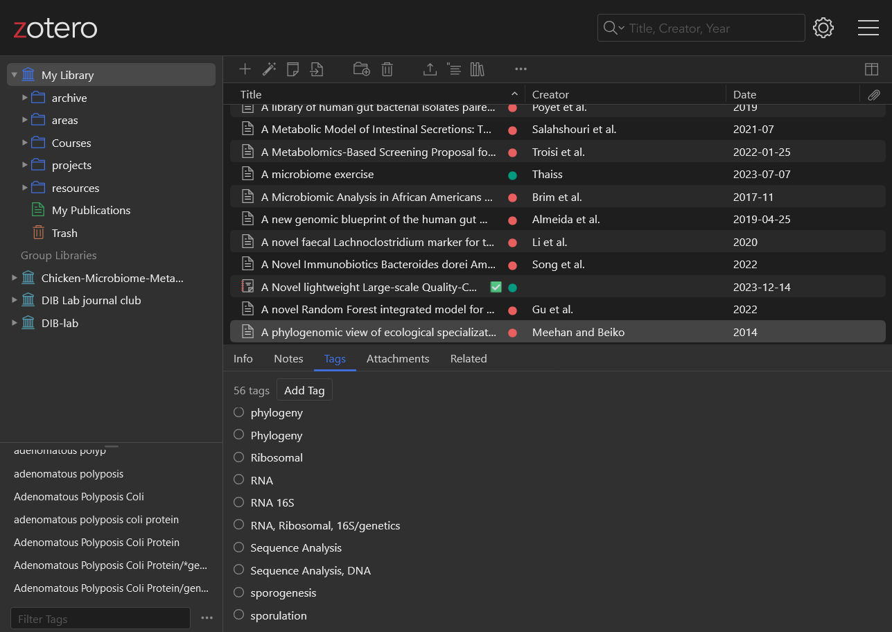 Create a folksonomy, or a thesaurus of tags, for [topics] studies.Edit 🢖 Advanced SearchCtrl+Shift+FAll fields, rapidly tag groups of items05:00