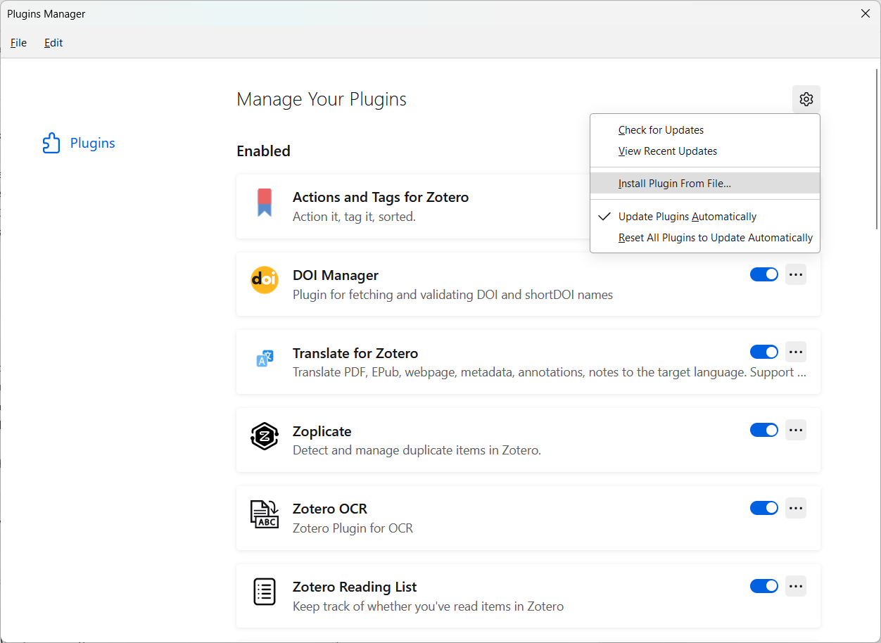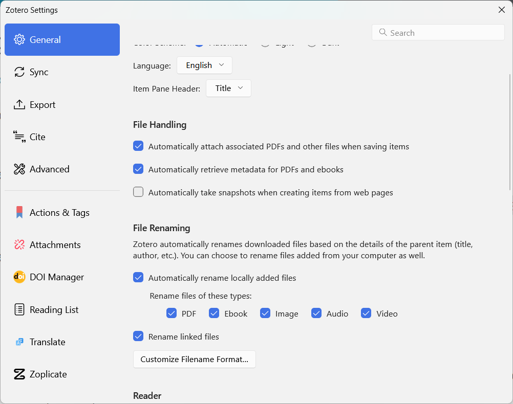 My LibraryAttachments 📎Ctrl+A)Manage attachments 🢖 Rename and MoveEdit 🢖 PreferencesBetter BibTeX 🢖 Open Better BibTeX preferences...Citation key formula